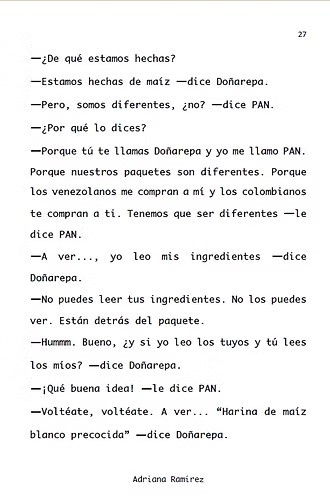 Throughout the story, we learn how arepas are made in each country and the unique differences between them. But the most curious part is that, in this story, the arepas come to life, share their opinions, and explore their own origins.